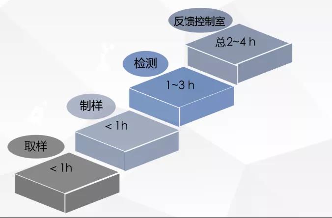 在这样的背景下,优化烧结配矿是保证优质高产的最重要手段之一。各个厂家各工程师,应用不同的配矿模型、考虑矿粉结构、高炉炉渣、水分、价格、高炉需求等等因素,得出最优的配矿方案。然而实际生产中的原料并不是一成不变的,原料的波动造成了配矿结果达不到预期,因此实时对原料成分特性了如指掌,才能扬长避短做到最优。传统烧结生产中,各企业所用传统方法主要是先取样,经过数小时制样、检测后,得到结果反馈到中控室,再进行相关调控(如下图)。